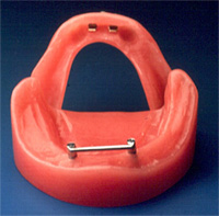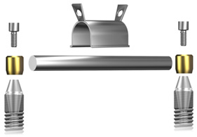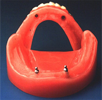 | インプラント用の義歯を2本あるいは、それ以上のインプラントとアタッチメントにより接続します。 |